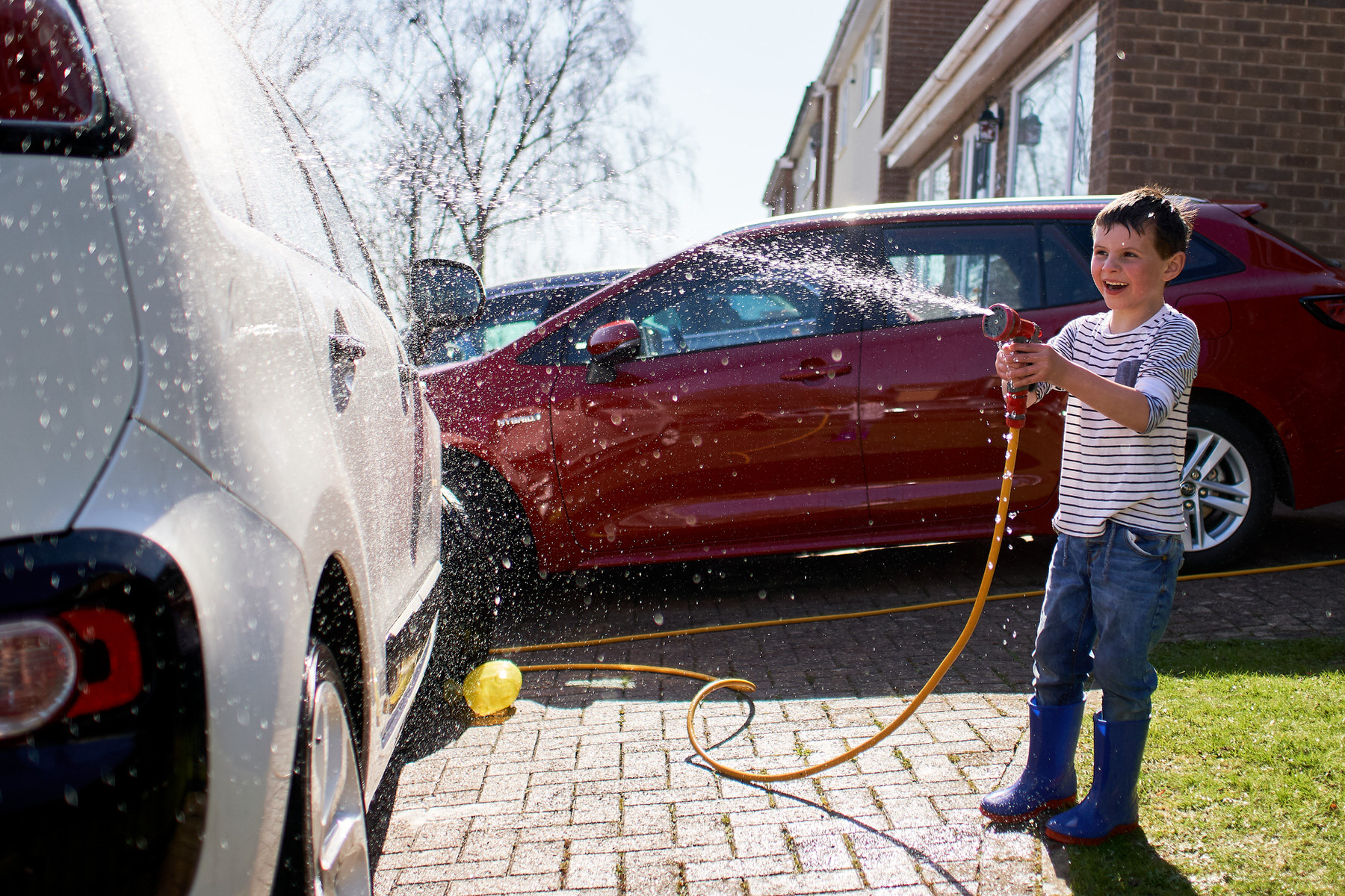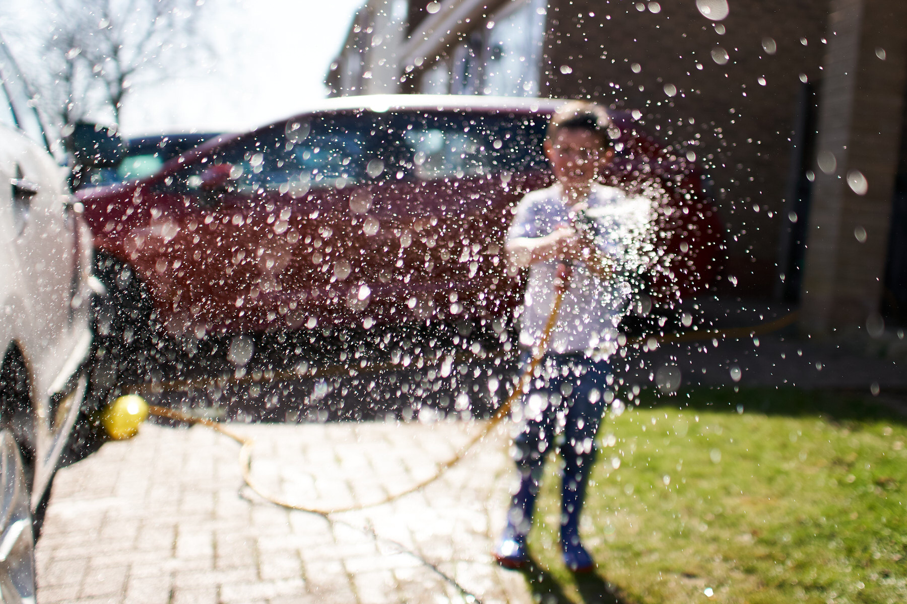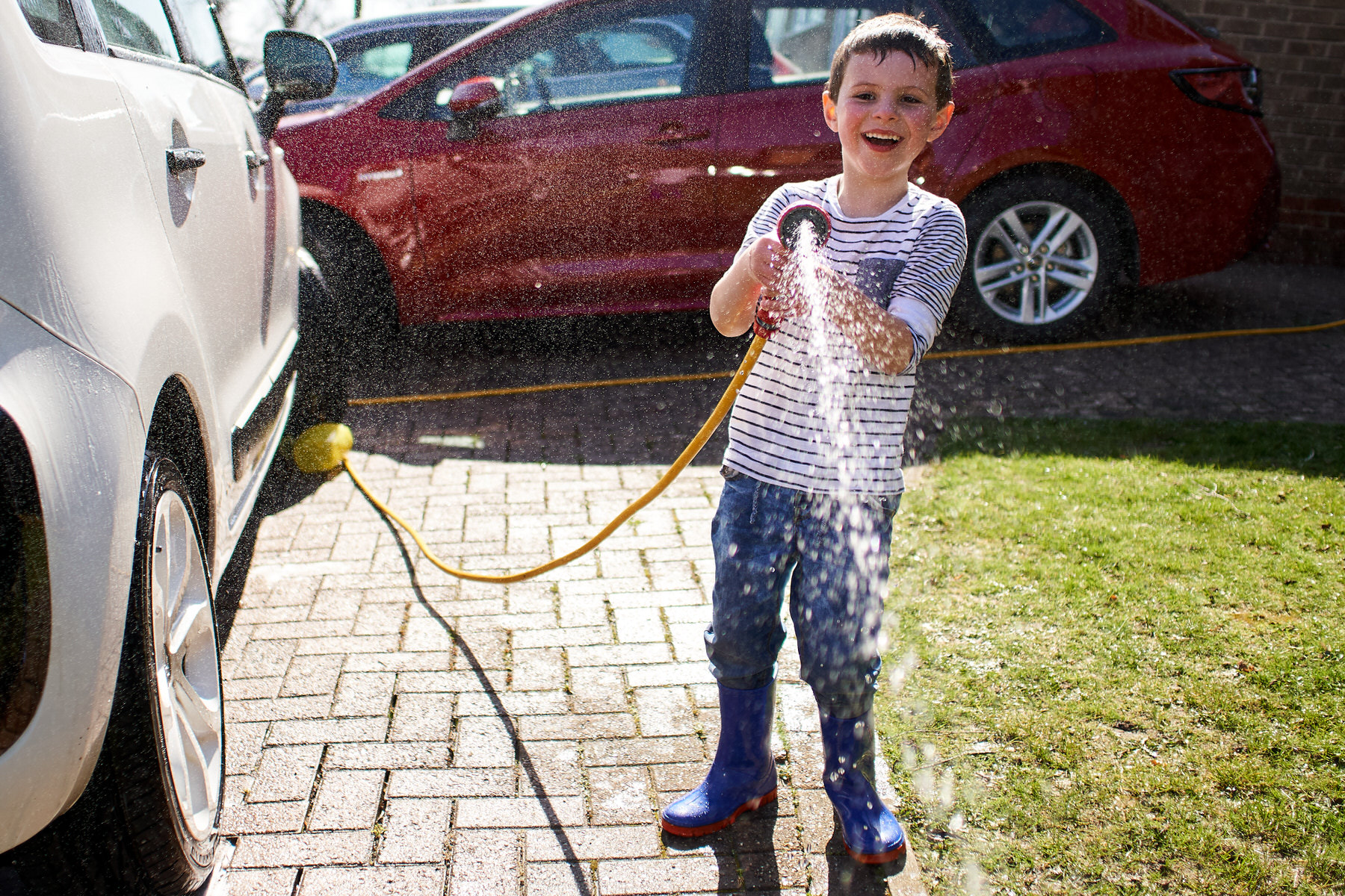 Once breakfast was dispatched there was a mention from Helen’s dad about cleaning my car. We jumped on that like an excitable 5 year old with a bucket of soapy water and a sponge… Instead of getting a soaking I advised Helen’s dad – Eddie – to perhaps enjoy some solitude and contemplate the morning news from the safety of the lounge. Needless to say Rupert couldn’t have been happier. Shampoo was nearly done and his attention wavering so the promise of the hose pipe cranked up the fun and kept him on side. There’s been a few times now when the little Sony camera has come close to a dousing. I’ve never quite let it get too extreme but it’s small enough to screen with my left hand if needed.