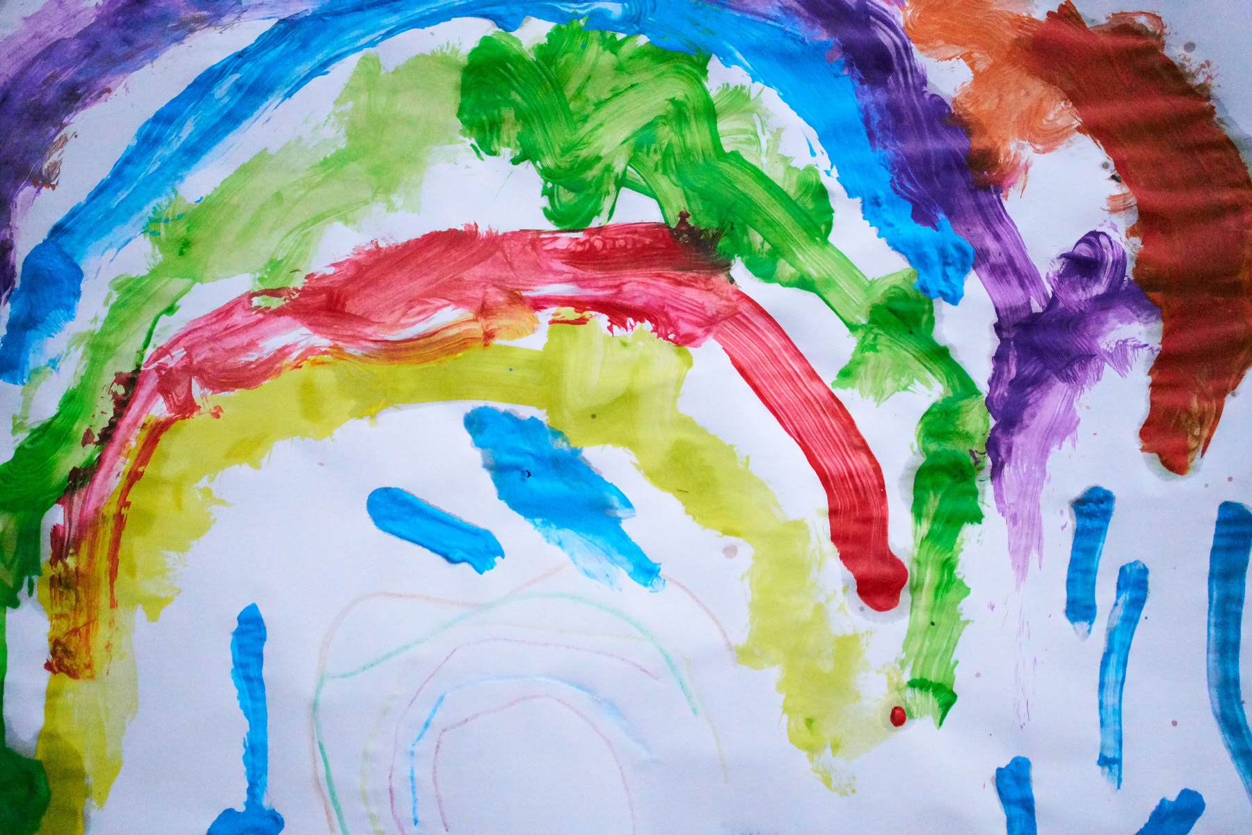 Using something called Class Dojo I sat down at the iPad with Rupert to watch his teacher give a short video commentating on the many rainbow efforts. She described his as being abstract, I may have detected a hint of sarcasm in her voice! This little bit of inspiration set us off on a very enjoyable 30-40 minutes of painting. And whilst he may not be due for a Turner Prize I’m proud of what we achieved.